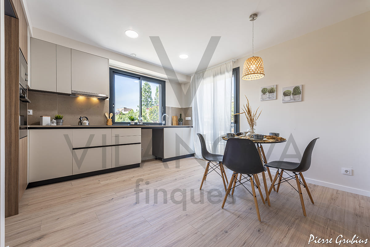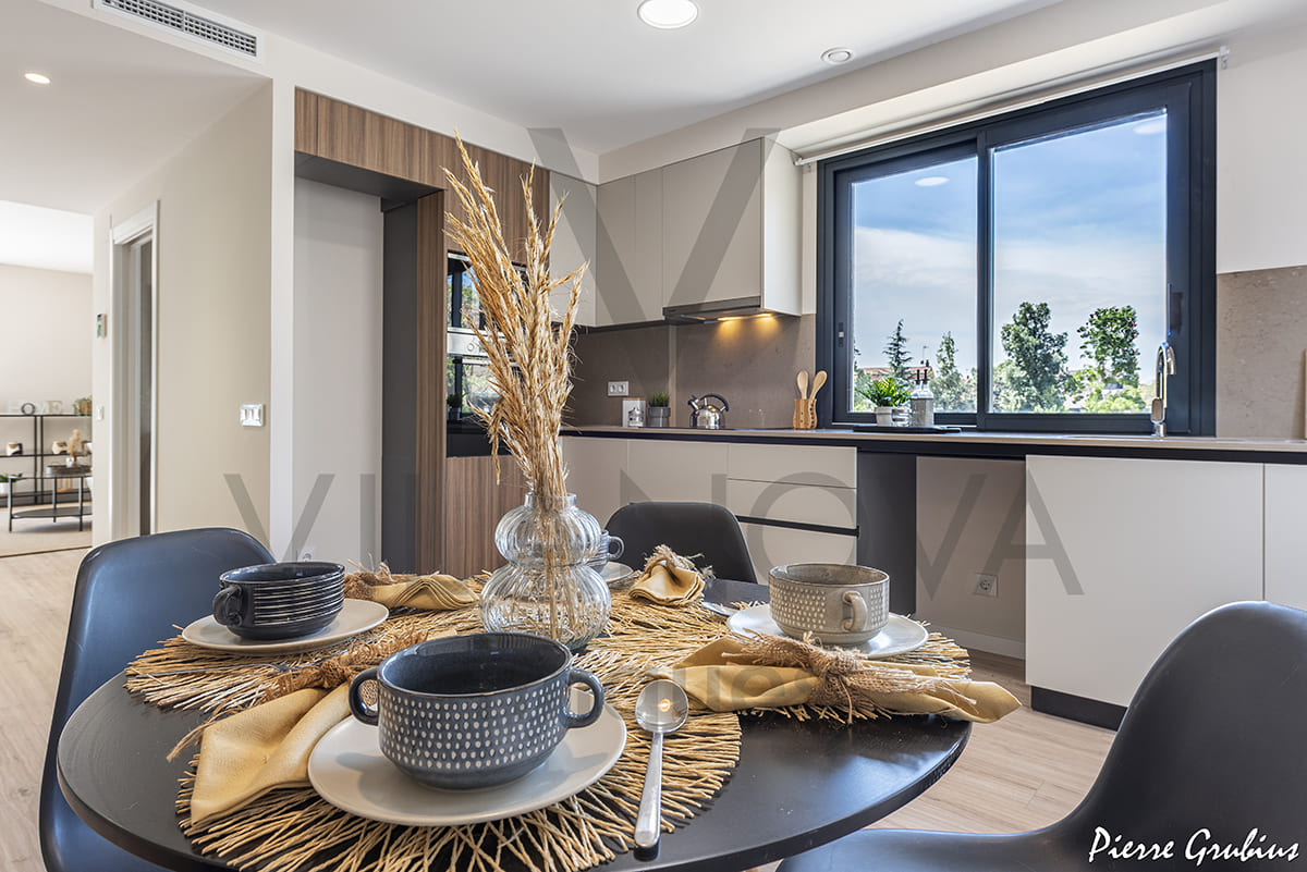 Cocinas de Diseño: Espacios equipados con mobiliario de alta calidad, encimeras de material porcelánico o cuarzo, y electrodomésticos de marcas líderes.